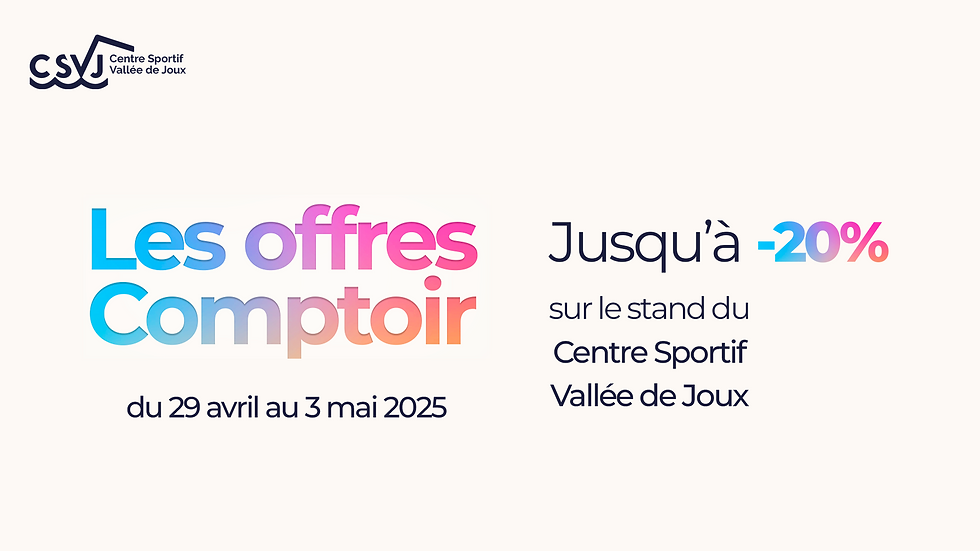 Ces offres sont exclusives au Comptoir de la Vallée de Joux et uniquement disponibles sur le stand du Centre Sportif Vallée de Joux. Une fois le salon terminé, c’est fini !